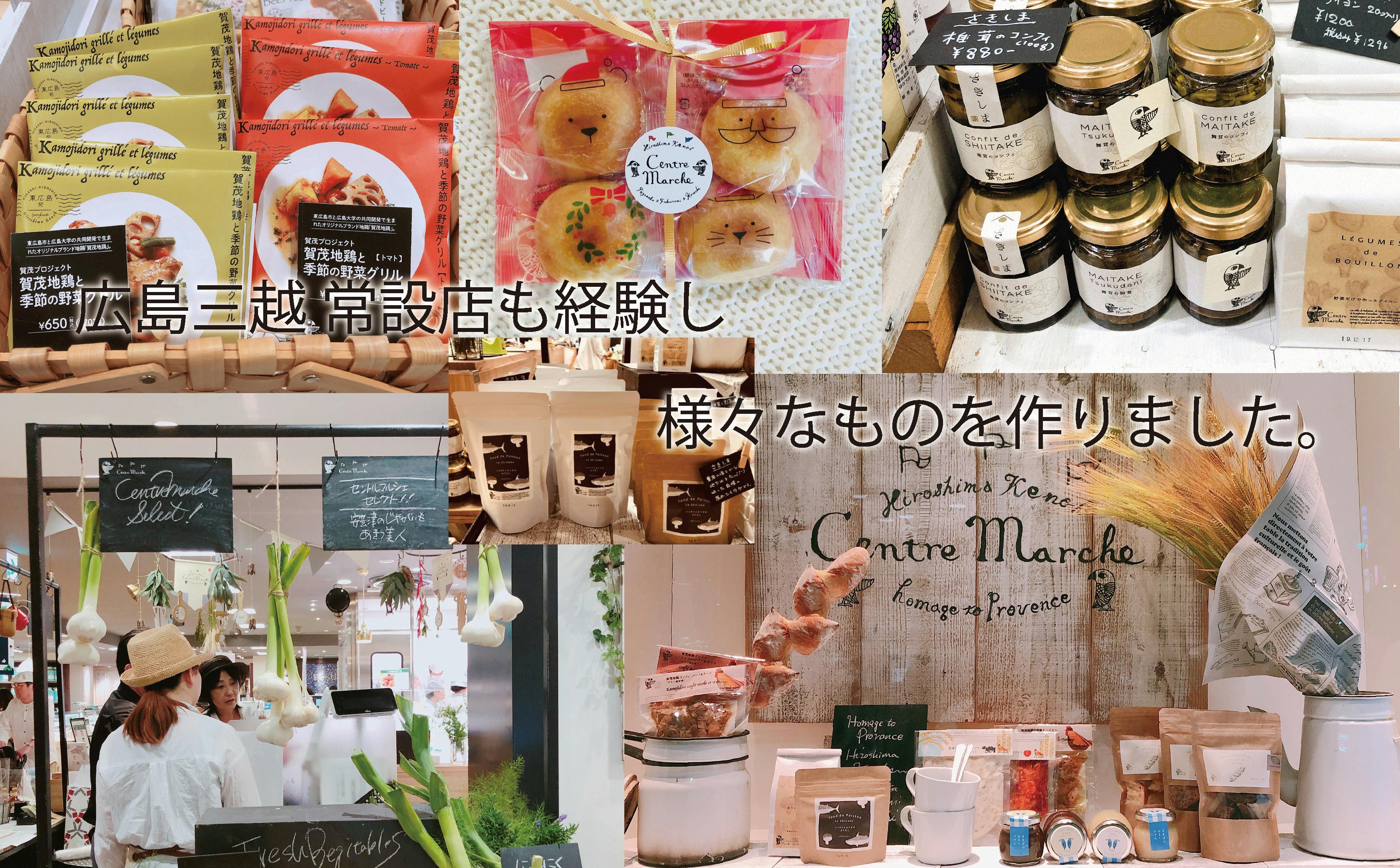 地域の活性化を考える上で特筆すべき産業や文化が見つからない・・・多くの中山間地域がこのような問題を抱えています。この課題に対して私たちが独自の商品、独自の販路で展開するのではなく「お手本はプロバンス」を合言葉にイメージを統一、広島県央地域の事業者が一枚岩となって、一つのブランドとして発信しています。そしてこのブランドを育てることによって大きな力となり地域全体に賑わいをもたらすことができると信じています。そのために地域の産物をより良いものに磨き上げ、各事業者が自信を持って”Centre Marche”ブランドとして提供できる商品開発にも尽力しています。私たちは今後この地域ブランドをモノだけでなく「コト」と「ヒト」にも作用させることによって、この広島県央地域(豊栄町・福富町・河内町)がさらに豊かな地域育つことを目指します。